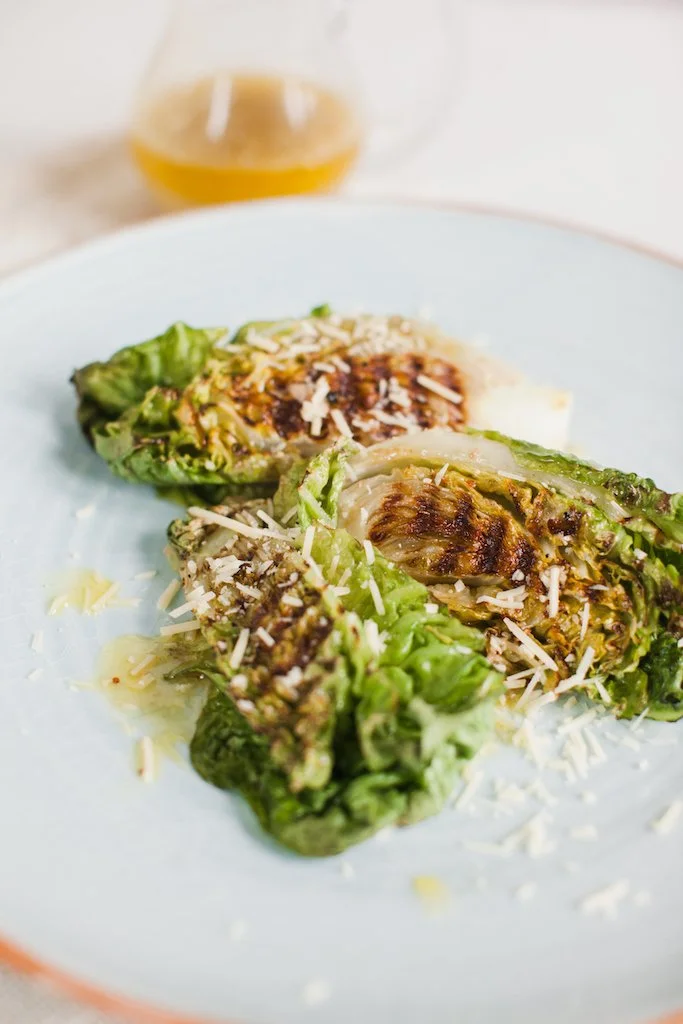 Grilled Baby Cos with Lemon and Anchovy Dressing